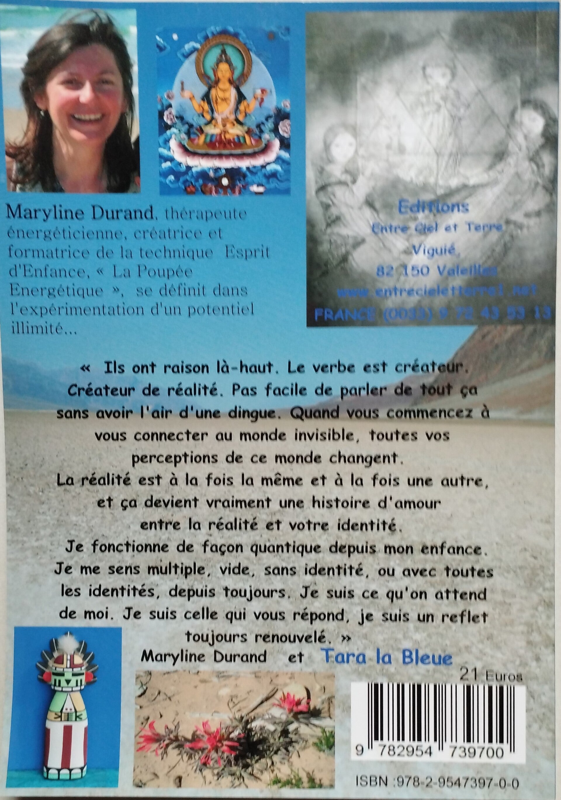 Je ne me suis pas réveillée un matin "illuminée", comme ça, comme par l'effet d'une baguette magique. Plusieurs étapes. Plusieurs ouvertures. Plusieurs expansions de conscience. Ce qu'il y a de plus magique devient rapidement normal, car l'être humain s' habitue a tout. Ca a débuté par quelques années de tunnel, de descente aux enfers, uniquement dans ma tête, car je n'ai vécu aucun malheur réel, aucune NDE, aucune catastrophe … Je déprimais par habitude, sans raison valable aux yeux de ce monde. Juste un peu fatiguée par quelques enfantements successifs pensait-on. Dans ma réalité intérieure, séismes et suicides se succédèrent, je ne comprenais ce que je ressentais … J'ai toujours eu « beaucoup d'imagination », cela représentait presque un handicap pour survivre dans ce monde. Je n'en suis pas fière, car j'ai appris récemment que c'est une histoire de récepteur. Je reçois bien. Comme un poste télé, un transistor, je capte. Des énergies, des ondes, des idées, des images. Et j'adore ça. Voilà pour mon imagination débordante. »